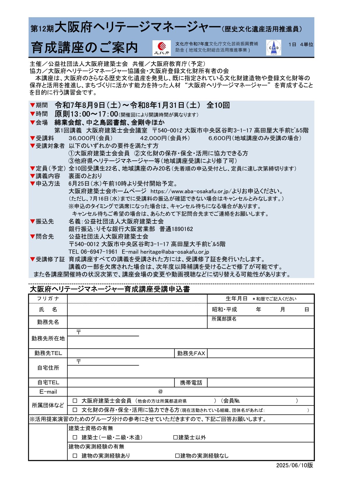 2025年度 JIAヘリテージマネージャー養成講座 追加資料のご案内