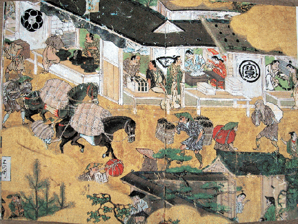 伝統的町家の古い形と言えば、まず思い浮かべるのが絵巻や絵図などに描かれている町家です。古代の町家が描かれている年中行事絵巻や信貴山縁起絵巻、中世の町家が描かれている洛中洛外図(歴博甲本)、近世であれば洛中洛外図(舟木本)など時代時代で町家が変化し発展してきているのがよく分かります。